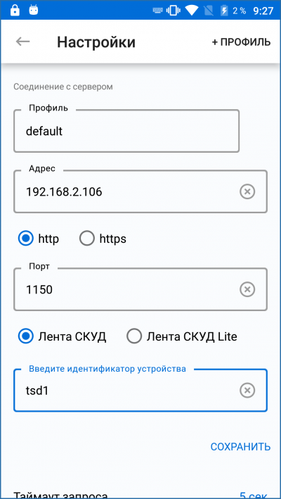 Для подключения мобильного сканера к серверу в настройках необходимо указать: