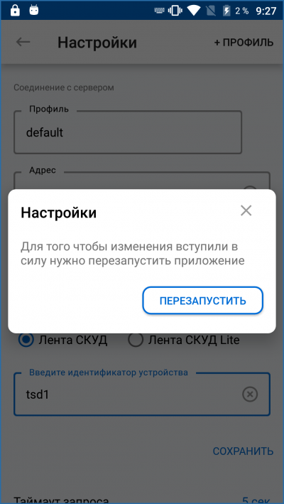 После сохранения настроек нажмите ← и перезапустите приложение.