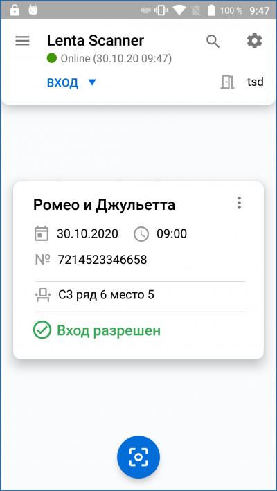 Сканирование билетов
