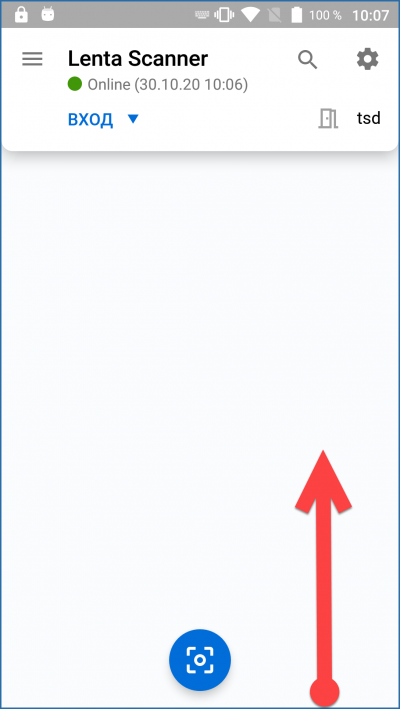 На главном экране приложения можно посмотреть историю проходов по последнему отсканированному билету. Для этого сделайте свайп снизу вверх.