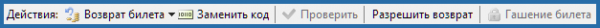 Ниже расположена панель действий, доступных только после выбора билета, над которым нужно провести операцию.