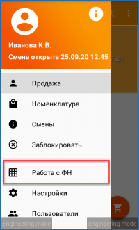 uniKa.Касса, ввести необходимые логин и пароль. Настройки фискального накопителя производятся в меню «Работа с ФН».