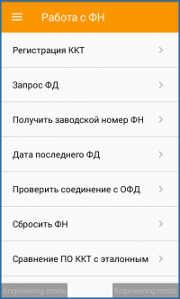 Настройки фискального регистратора