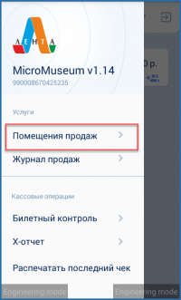 Настройки программы мобильного кассира MicroMuseum